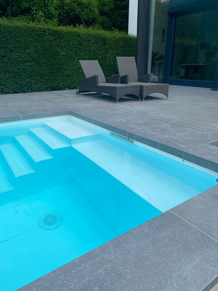 Unsere Poolrandsteine aus Feinsteinzeugkeramik vereinen minimalistisches Design mit edler Ästhetik und schaffen so eine stilvolle Umrahmung Ihres Pools. Jedes Formteil wird nach Vorgabe oder unserem Aufmaß millimetergenau zugeschnitten und auf Gehrung gefertigt. Dazu können auch passende Rinnensteine und ähnliches zugeschnitten werden. Wähle bei unserem Partner in Ihrer Nähe die passende Outdoorfliese, um deinen Außenbereich eine exklusive Note zu verleihen – ganz nach deinem persönlichen Stil.