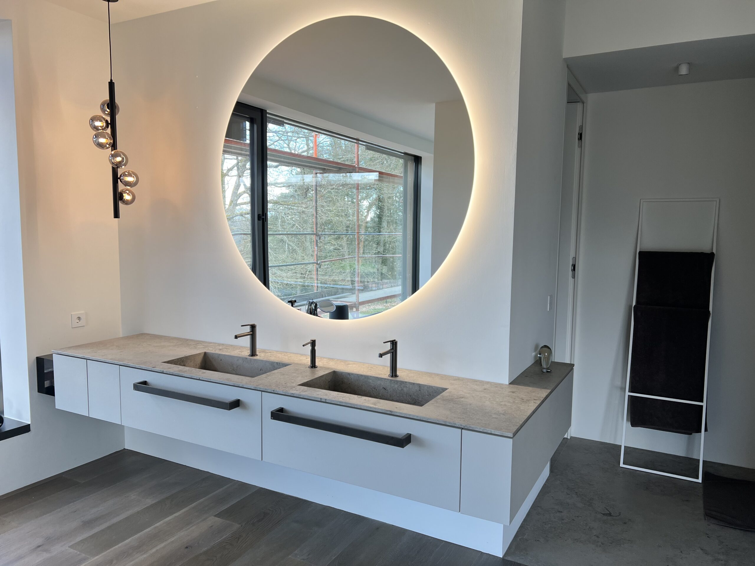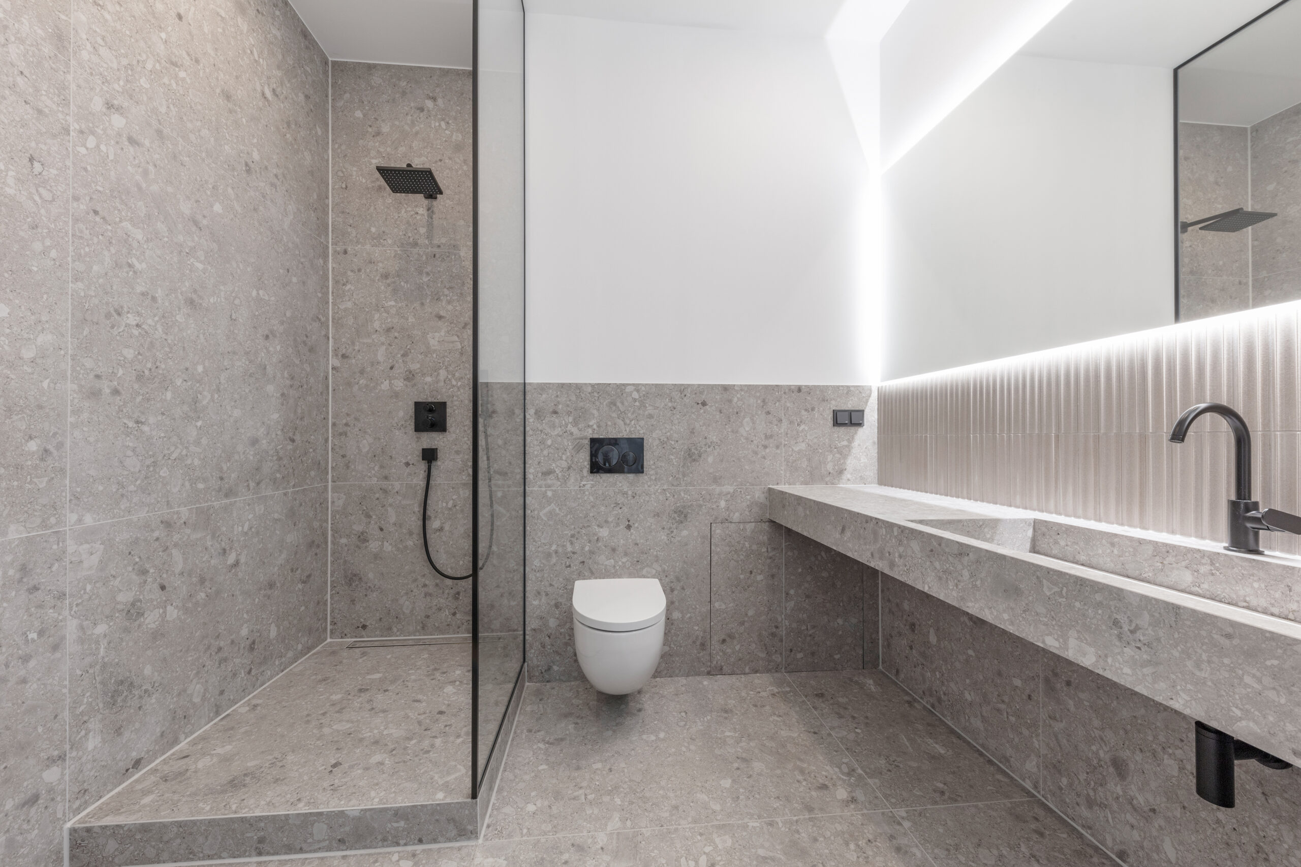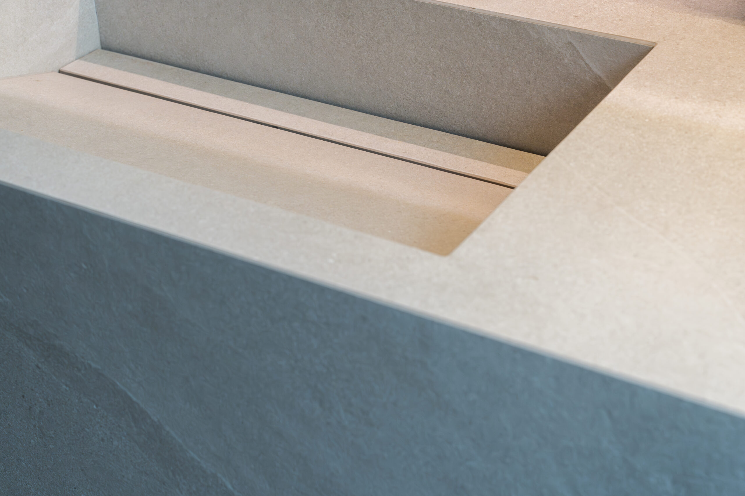 Ergänze unsere Keramikwaschtische mit maßgefertigten Badmöbeln, die mit der passenden Keramik verkleidet sind. Ob als einheitlicher Baukörper gefertigt oder als separates, wandhängendes Element – die Lösung ist praktisch, individuell und perfekt auf dein Bad abgestimmt.