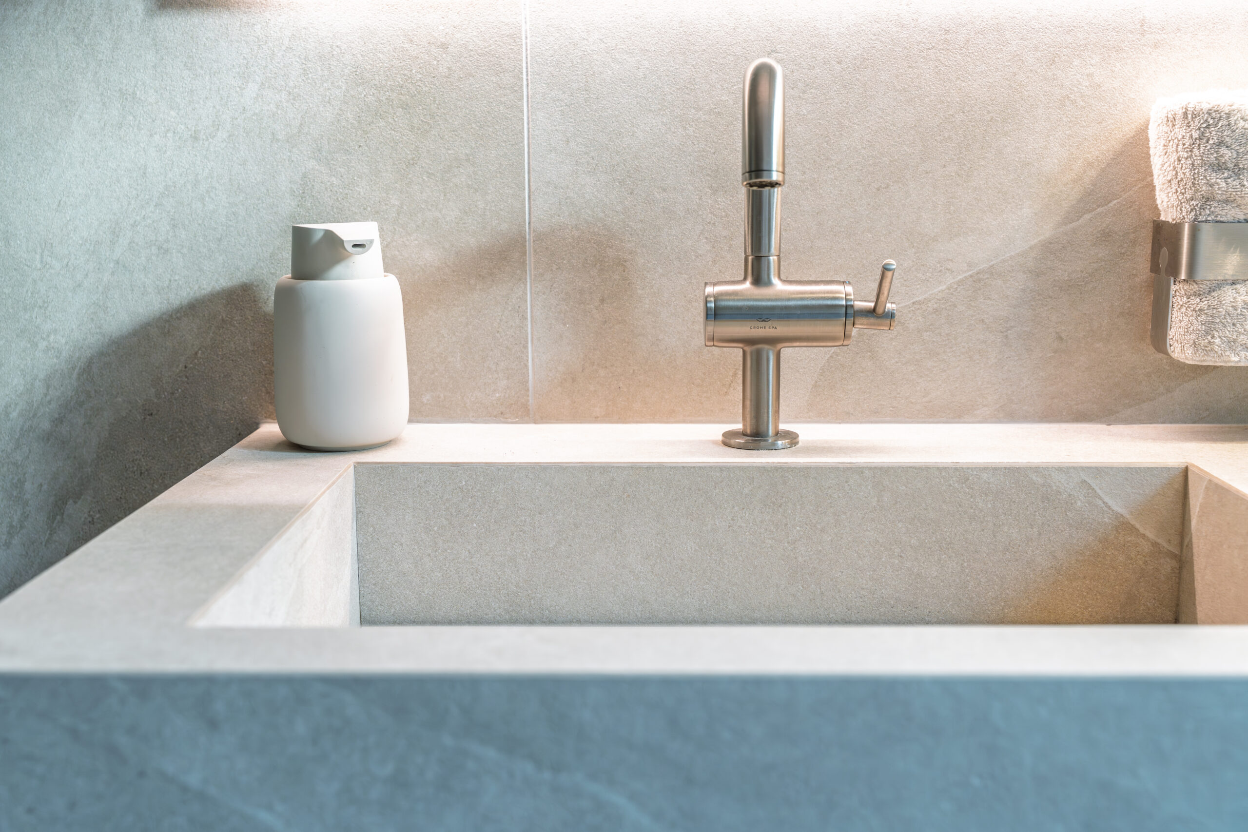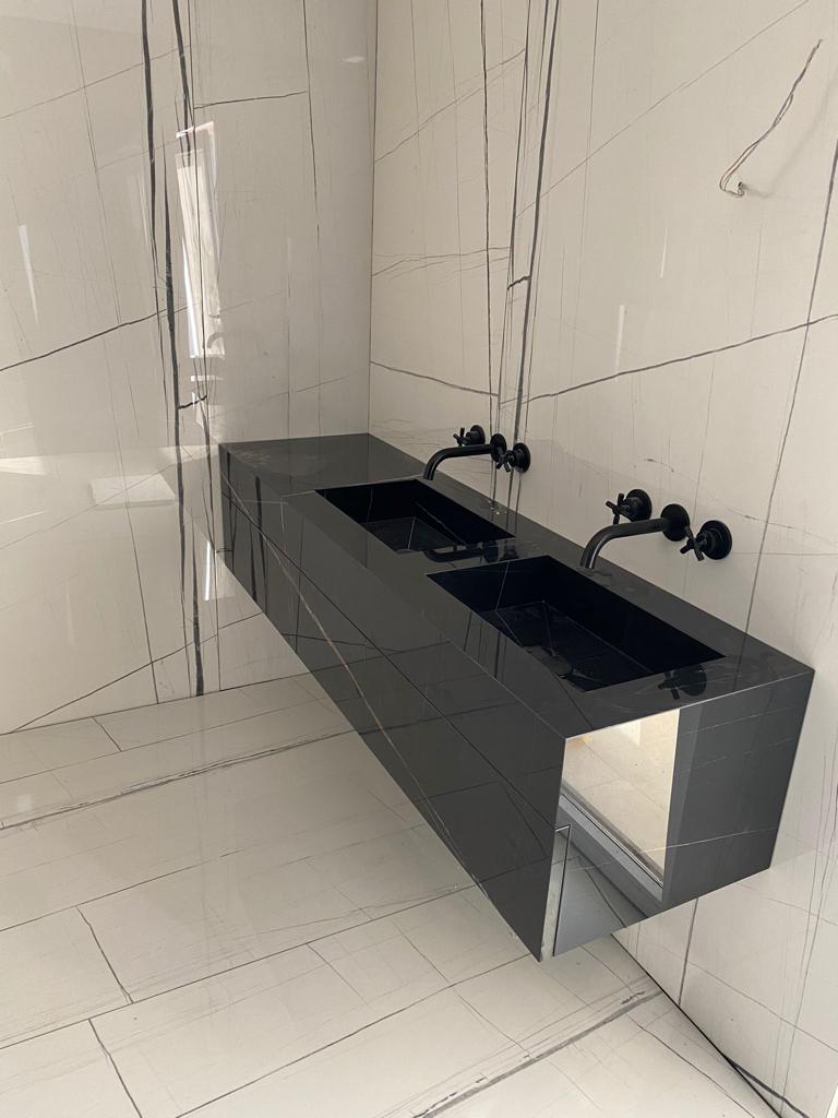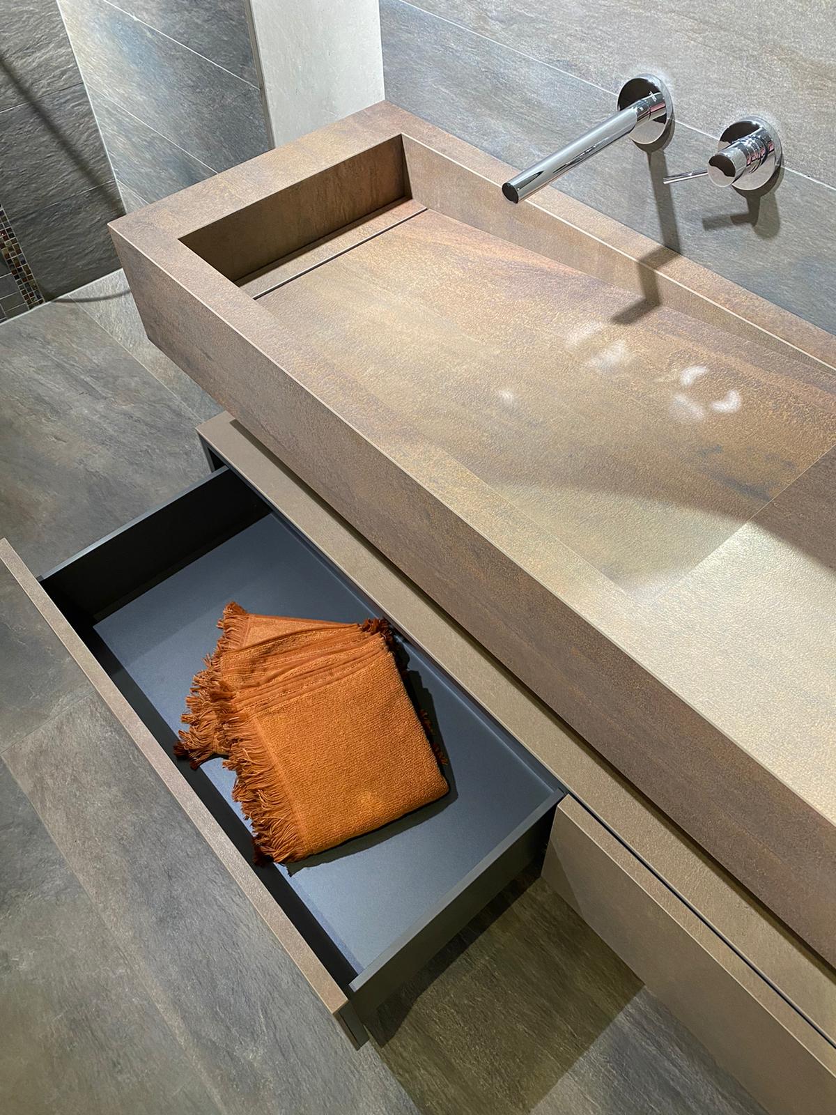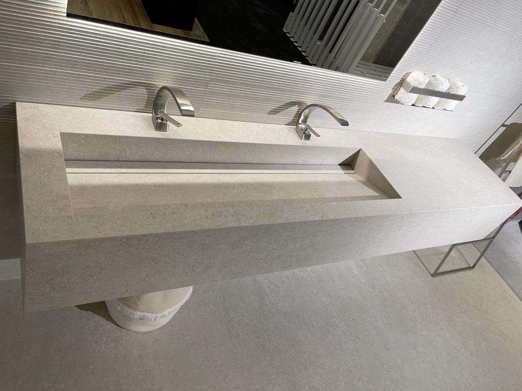 Temperaturwechselbeständigkeit, Abriebfestigkeit, Reinigungsfreundlichkeit und stilistische Vielseitigkeit machen Feinsteinzeug zum idealen Material zur Fertigung von Waschtischen.