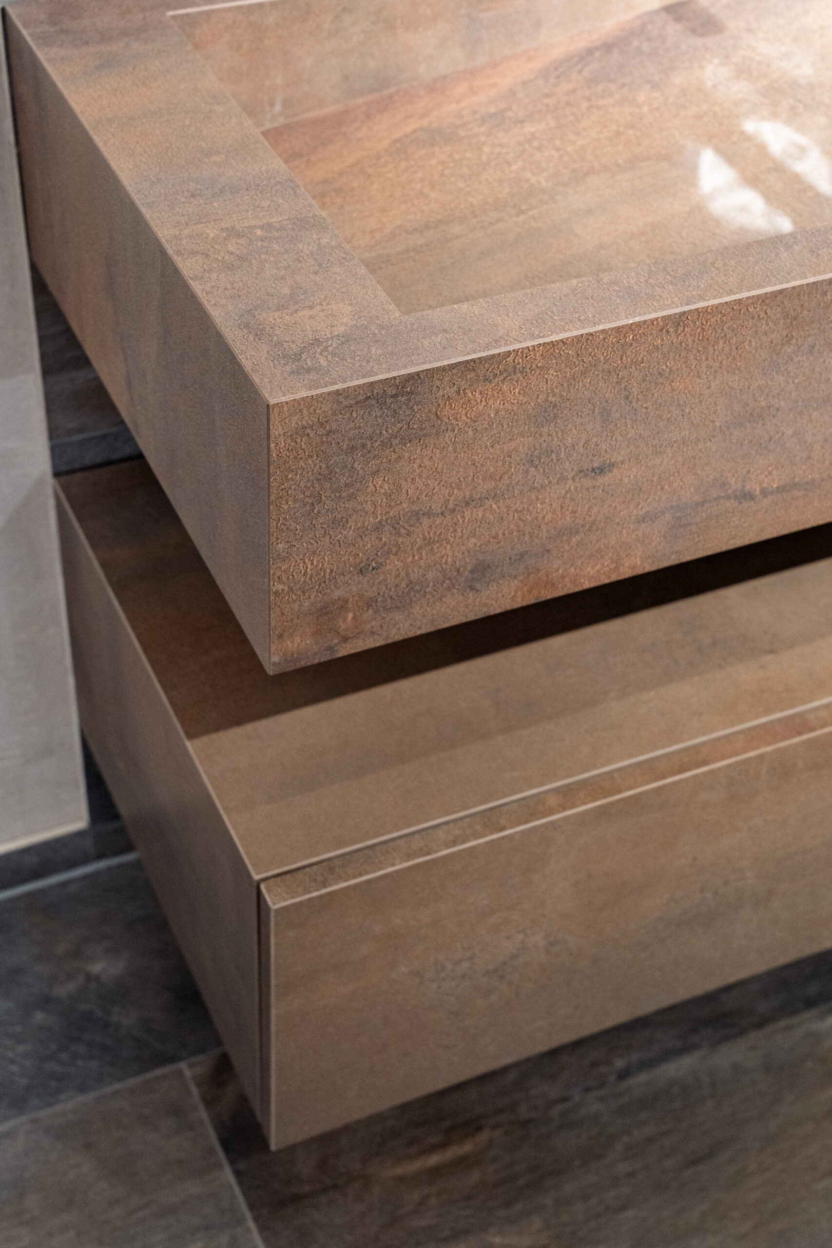 umfasst Großplatten in 40 Farben und 90 Oberflächen, aus denen du das passende Design für deinen Wunschwaschtisch wählen kannst.