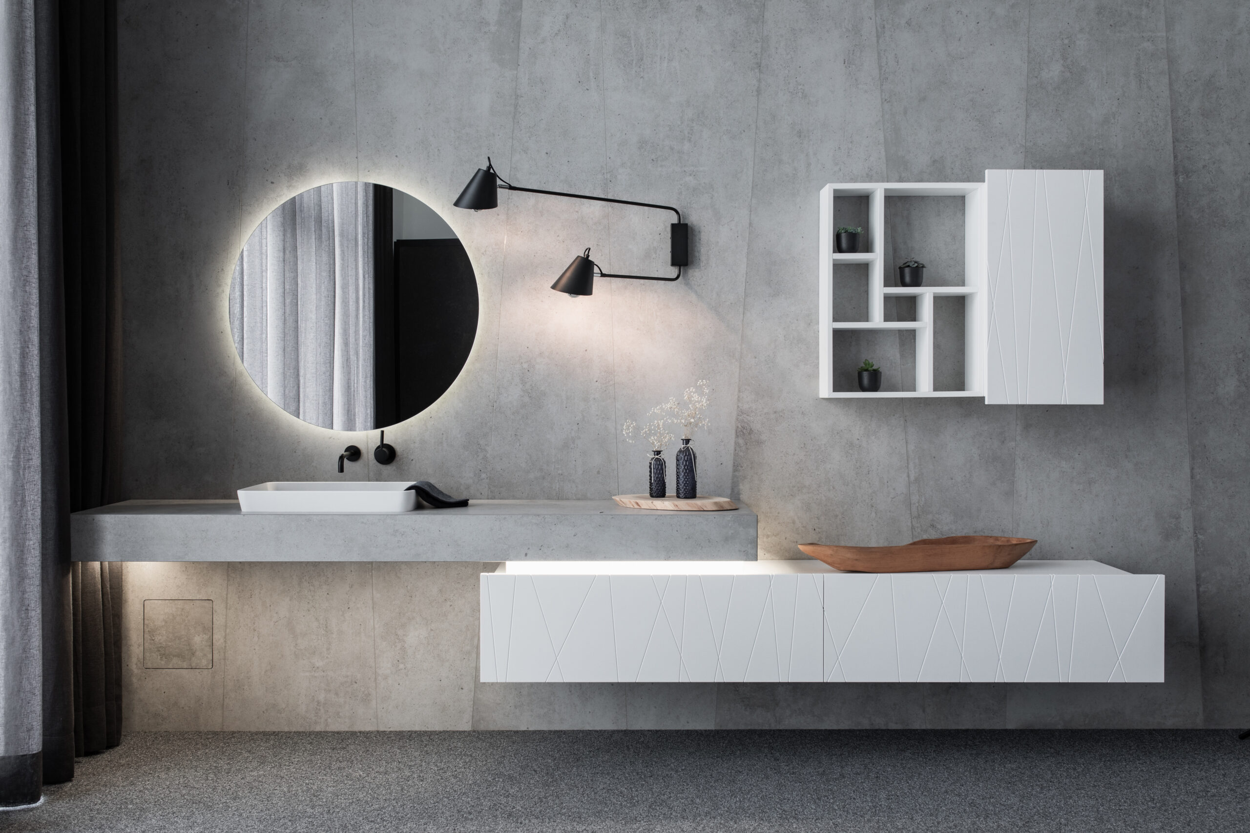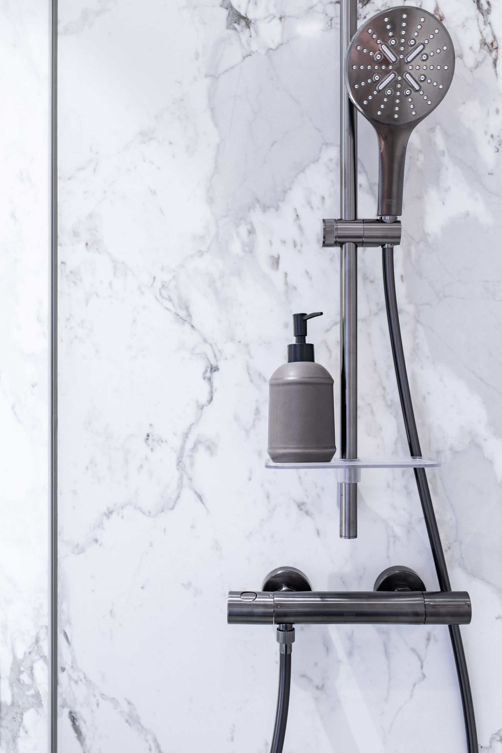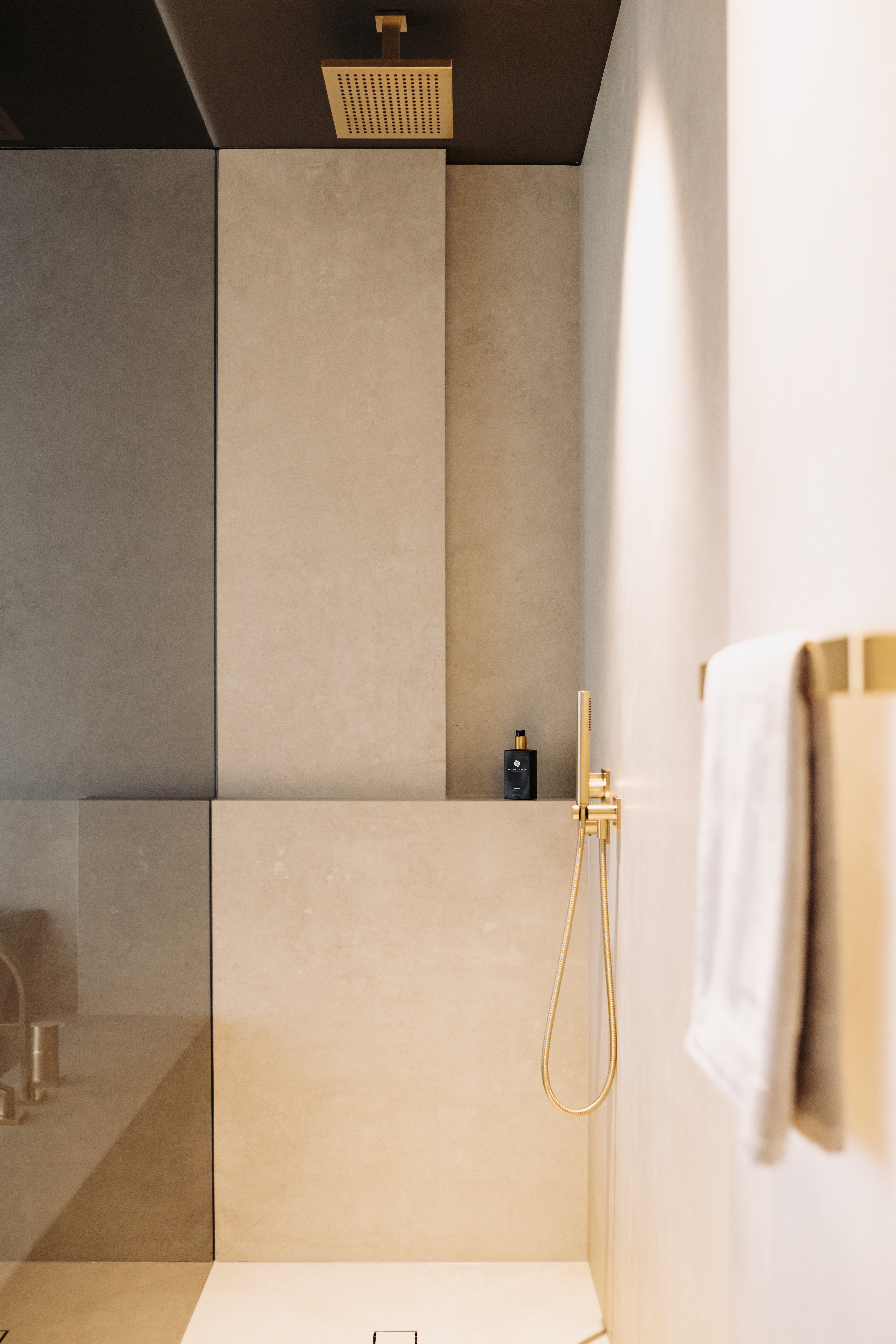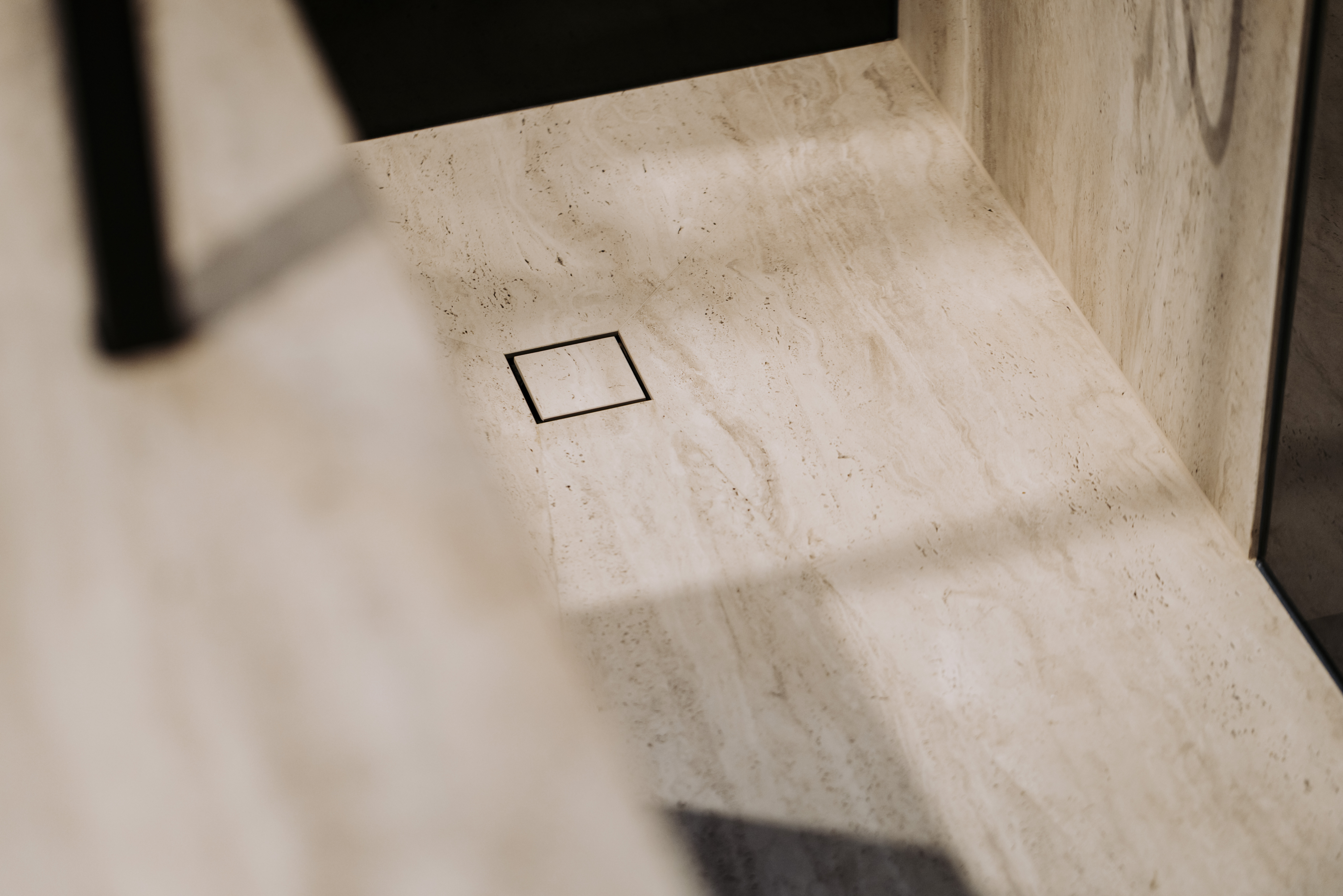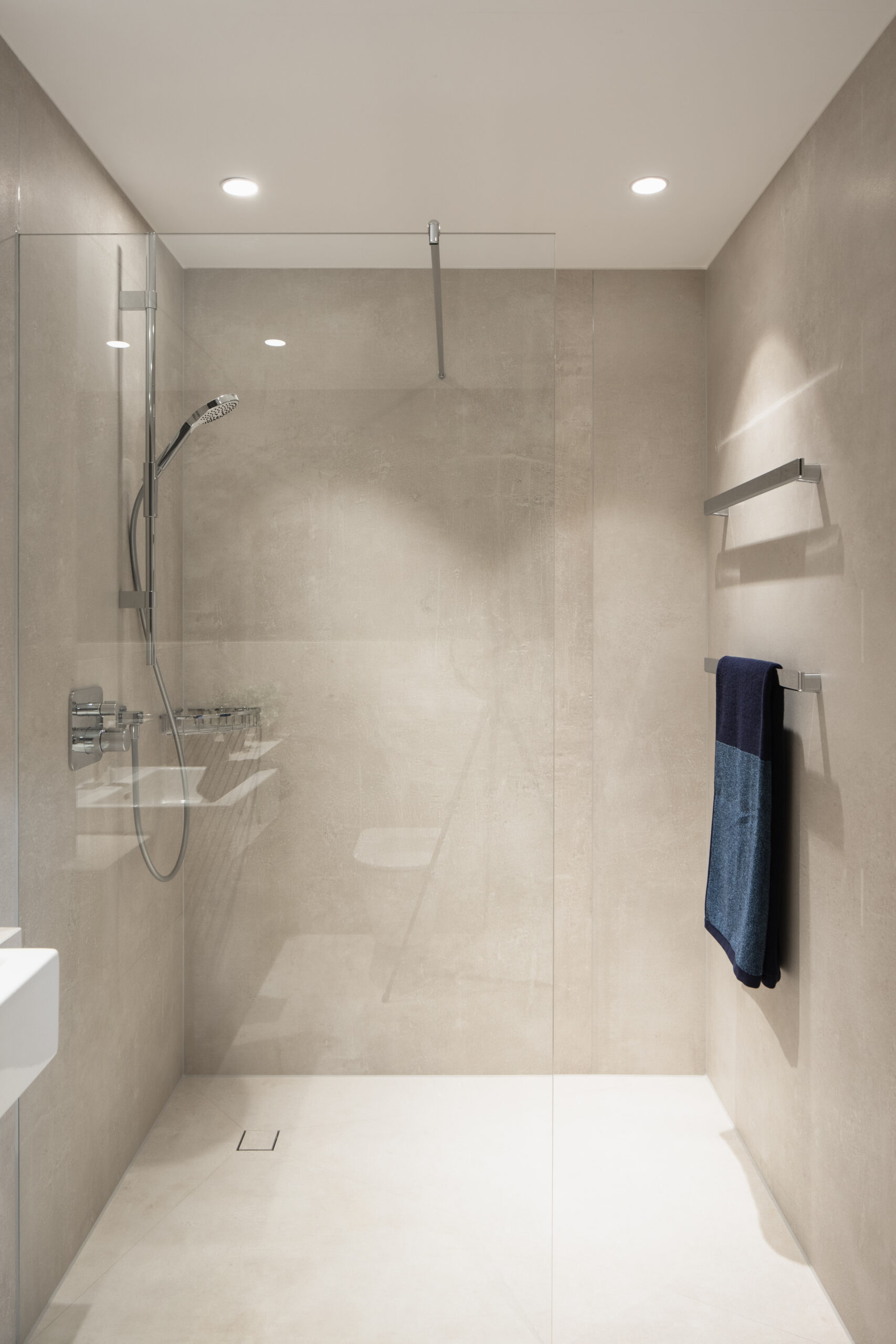 Die großformatigen Fliesen verleihen deinem Bad ein fugenarmes und großzügiges Design. Mit einem Waschtisch oder einer Waschtischablage aus dem gleichen Material erzielst du den minimalistischen, homogenen Look eines modernen Badezimmers. Wir fertigen nach deinem Wünschen maßgenau.